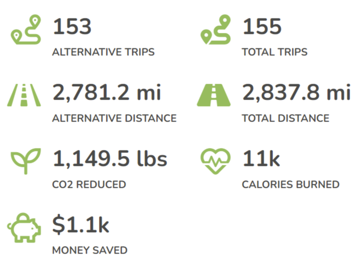 STAR tracks sustainable commute trips, unlocking rewards, resources, and enabling participation in challenges to promote sustainable commuting practices while empowering commuters to visualize their CO2 reduction and cost savings.