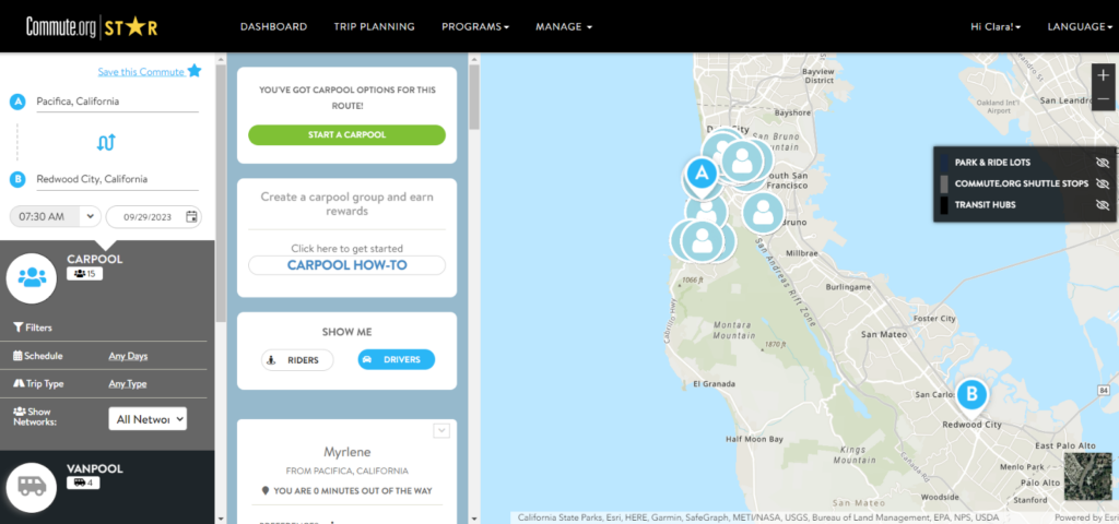 One easy way to start is by joining the STAR platform, a free tool designed to help San Mateo County commuters find carpool partners, log trips, and earn rewards. Each employer in the county can have their own STAR network, where employees can join and find carpool partners internally. Simply create an account at my.commute.org to get started. If your employer doesn’t have a STAR network yet, Commute.org staff are happy to assist in setting one up. As a public agency, this service is completely free, making it easier for everyone to enjoy the benefits of carpooling.